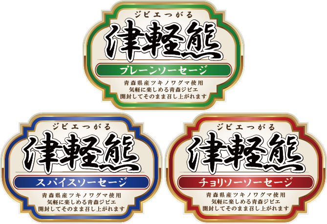 青森県産ツキノワグマを使用したソーセージ3種類・各2本パックの詰め合わせです。